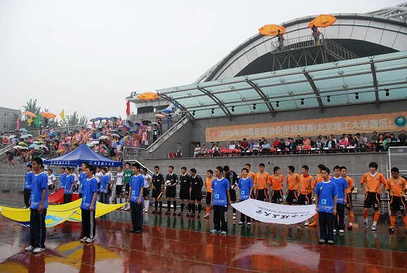 6月14日下午,一场引人瞩目的大战又将在北理工的主场进行,北京爱国者大学生足球队将迎战前来挑战的上海东亚足球队,由于北京从夜里就下起小雨,直到比赛开始雨依然没有停,所以双方不得不在北理工的主场面临一场雨战。这场比赛之所以引人瞩目,是因为双方的“掌门人”分别是徐根宝和金志扬,十几年前,这两位昔日在甲A的赛场上指挥申花和国安双雄争霸,并被足球界称为“南徐北金”的流派代表人,后来都曾经担任过国字号的教练,都有过辉煌的时刻。
