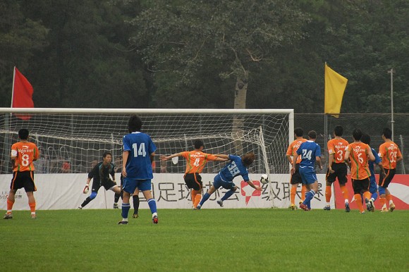 第50分钟,北理工队两名韩国外援互换,裴相骏换下朴天龙。刚刚结束换人,北理工就获得了一次绝好的机会,在进攻右路直接将球传中,门前包抄的杨思源头球一蹭,对方后卫跟上起脚解围,皮球转向球门险些成为乌龙球。5分钟后,北理工再次利用对方后卫的解围失误获得角球机会,袁微直接将球转向后点,后点埋伏的队员头球回传中路,门前跟进的张树头球攻门但没有顶上力量。