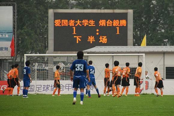 北京时间6月28日下午,中甲联赛烽烟再起。在本轮率先开赛的一场比赛中,由北京爱国者理工大学队在奥运前最后一个主场的比赛中主场迎战烟台毅腾队。比赛刚刚开始不到3分钟,8号队长袁微开出角球,17号张树高高越起头球一蹭,造成对手的乌龙球。第25分钟,烟台毅腾队穆德拉格轻松停球在面对门将的情况下直接将球挑过门将,39号朴正焕头球跟进将比分扳平。第65分钟,18号杨思源门前头球攻门将比分再次反超。进球简单而有效。第82分钟,王静铉点球一蹴而就将再次比分扳平。而烟台毅腾队的主教练被罚出场也成为比赛的一个焦点。最终双方经过激战战成2-2。