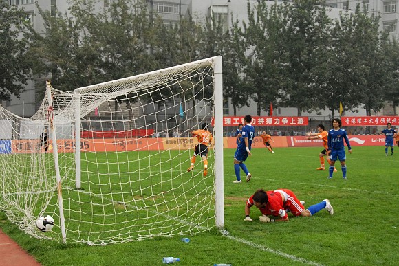 随后北理工在前场右侧进攻造成对手犯规获得任意球机会,8号袁微将球开到后点,跟进包抄的队员头球攻门,对方门将将球奋力扑出,可惜门前并没有埋伏的北理工球员,北京理工队再次错失一次机会。最终双方在上半场暂时打成平局。
