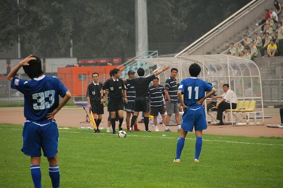 两队在开场后就各自完成了一次有威胁的进攻,只是北理工抓住了一次机会。但从开场仅15分钟双方就各自有3个角球的机会来看,由于两队都排出了3后卫的进攻阵型,本场比赛势必会成为一场对攻战。