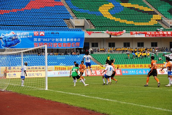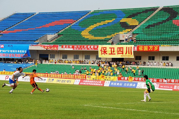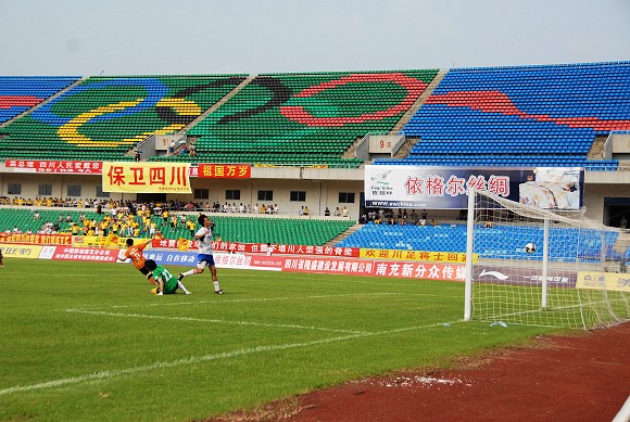 由于地震受灾,川足在5月12日之后的比赛全部改为了客场,而从七场比赛来看,球队也只是取得了一胜一平。尤其在近4场比赛当中,川足不仅一个积分没有拿到,甚至也只是打进了一个进球,这与联赛初期爆冷击败舜天的场景可谓悲喜两重天。最近几天,南充气温陡增,赛场的温度接近38度,但这并未削减狂热的四川球迷,从比赛前一个小时,陆陆续续从各地赶来的球迷便开始入场等待期盼已久的主场比赛。