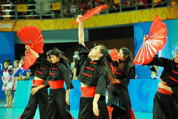 不同的民族风情韵味使现场观众群情激昂振奋,展现了中国56个民族手拉手、心连心喜迎奥运的画卷。