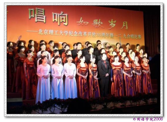 2008年12月7日晚,德赢AC米兰官网纪念改革开放30周年暨一二.九合唱比赛在中心教学楼一层报告厅隆重举行。来自全校各个学院的13支合唱队同台表演,气氛热烈。经过激烈角逐,我院合唱队以优秀的表现获得三等奖,成绩在13支合唱队中名列第五,展现了我院学生的良好精神风貌和综合素质。