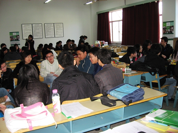 与GE冷静的气氛不同,MOTO的气氛从一开始就是非常热闹的,一开始的破冰游戏让同学们在有压力的情况下去和不认识的同学打招呼,所以后来的小组讨论气氛非常热烈也就在意料之中了。组长正穿梭在小组间为大家录像。