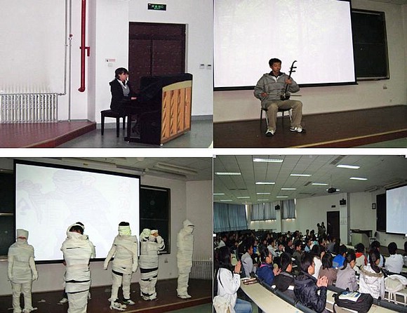 比赛由必答填空题、选择题、抢答题、判断题和简答题组成,活动中选手们尽展聪明才智和个人魅力,竞争激烈。当然,欢乐的气氛始终贯穿整个活动现场,比赛中还穿插有互动游戏“木乃伊”和精彩的钢琴、二胡独奏。