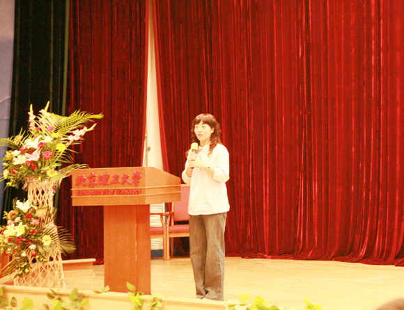 著名诗人安琪说,她曾参加过很多高校诗歌节,但是到理工科大学参加诗歌节还是第一次,理工科学校同样有很多有才华的人。她说,今天是母亲节,她收到精心准备的康乃馨,作为一个母亲,作为一个诗人,她都感到倾向文学社乃至所有诗歌爱好者的温暖和美好内心。