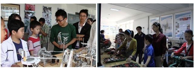 本次科普开放日活动把全民科学素质工作与今年开展的“科学发展、辉煌成就”主题教育活动结合起来,把宣传成就、学习科技典范、传播科学知识、弘扬科学思想与宣传党的伟大成就和中国特色社会主义结合起来。唱响共产党好、社会主义好、改革开放好的主旋律。其中学生设计作品“长征组歌”,通过历史事件与机械系统的巧妙结合,实现了机构运动再现了红军长征的艰难历程。它既是一个机械原理的展示陈列,也是一个红色教育展示舞台,是具有深刻爱国主义教育意义的设计作品。