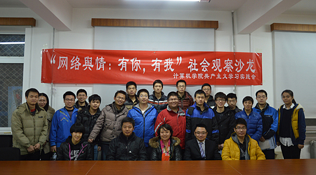 2013年12月22日下午2点,以“网络舆情:有你,有我”为主题的计算机学院社会观察沙龙在中关村校区计算中心110会议室举行。作为“信仰·青春·阳光”主题教育活动的组成部分,本次沙龙是计算机学院“思民生国计 辩热点时事”系列社会观察沙龙的第二期,由计算机学院分团委主办,学院共产主义学习实践会承办。德赢AC米兰官网新闻网编辑、摄影协会会长段炼,前学校时事论坛坛主陈楚峰,学校共产主义学习实践总会会长曹创,总会组织联络部副部长高家思出席此次活动,参加活动的学院领导有学院党委副书记副院长赵满和分团委书记孙程。本次活动吸引了团学骨干、各党支部代表以及积极参与话题思考的同学参加,活动由学院共产主义学习实践会会长王亚珅主持。