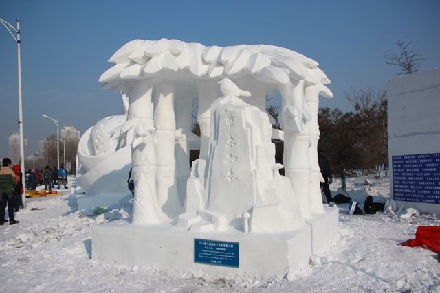 国际大学生雪雕大赛是黑龙江省高校冬季特色品牌文化活动,从2009年由哈尔滨工程大学发起并承办每年举办一届雪雕大赛,每次都有来自欧洲、亚洲等多个国家的代表队前来参赛。目前为止,我校已经连续参加了四届雪雕大赛,曾获得二等奖的历史最佳成绩。