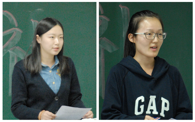 接下来,大二日语系焦蕴怡同学作为学长代表发言。她从学习能力、社会实践等方面,鼓励学弟学妹们全方位做好发展规划。告诉同学们要学会专注做事,享受学习和工作,做最好的自己,不要输给自己的懒惰,做一个满意的自己。德语系孙天歌同学作为新生代表发言,她畅谈了十八天军训生活,感受到这所从延安走来的大学的严谨和务实;同时,外院领导进宿舍,中秋节慰问等活动令她十分感动,感受到外国语学院这个大家庭的温暖;最后,她表示在师长和学长的引领下,自己一定勤奋求学,认真做事,用自己的实际行动迎接美好的未来。