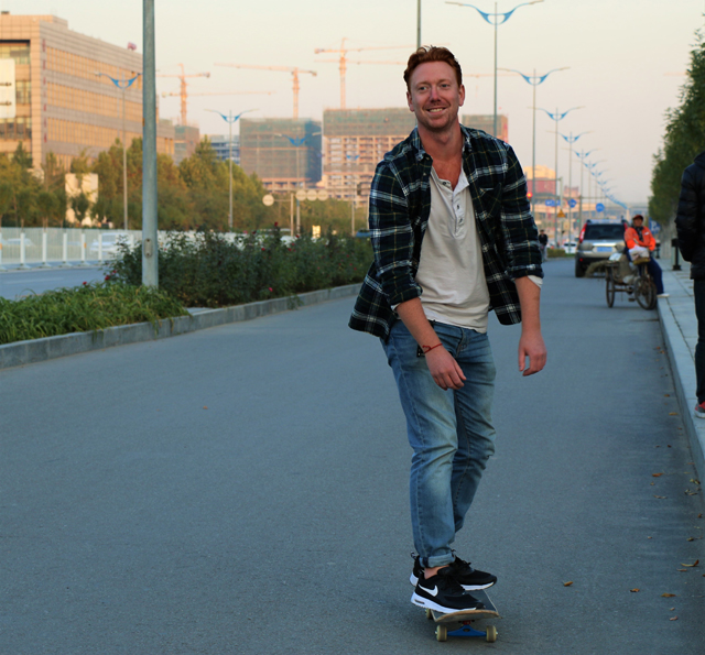 Peter说,他对中国抱有十分浓厚的兴趣,除了因为妈妈是中国人以外,他还觉得中国人民非常友好,而且热情好客。初来这里短短的两个月,他已经结交了不少的中国朋友,不仅如此,他们还组成了学习和活动小组,共同努力督促彼此的学习。这个阳光般的澳洲男孩开心的说,他最爱的就是每天踩着滑板上下学,并且在徐特立图书馆门前练习“飞越石球”这一独门绝技。