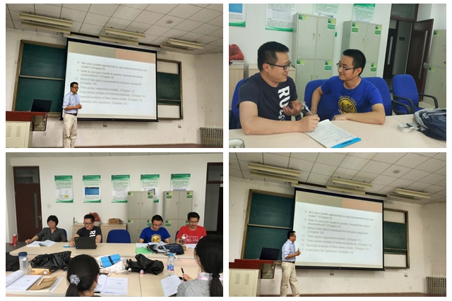 宁炜副教授的此次访问受到了学校研究生院的大力支持。在访问期间,宁炜老师为学院硕士和博士生开设《时间序列分析》双语课程。课程通过具体实例,系统讲授时间序列的基本概念、理论方法、计算技巧以及国际前沿研究热点。宁炜老师学术风格严谨、讲课方式幽默生动、课程内容丰富,不仅有效开拓了学生的国际视野,也极大丰富了学生的知识体系。
