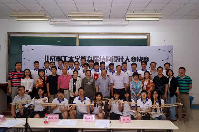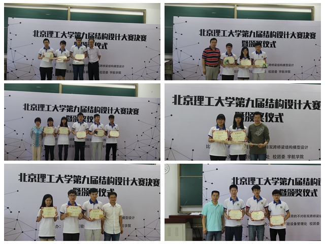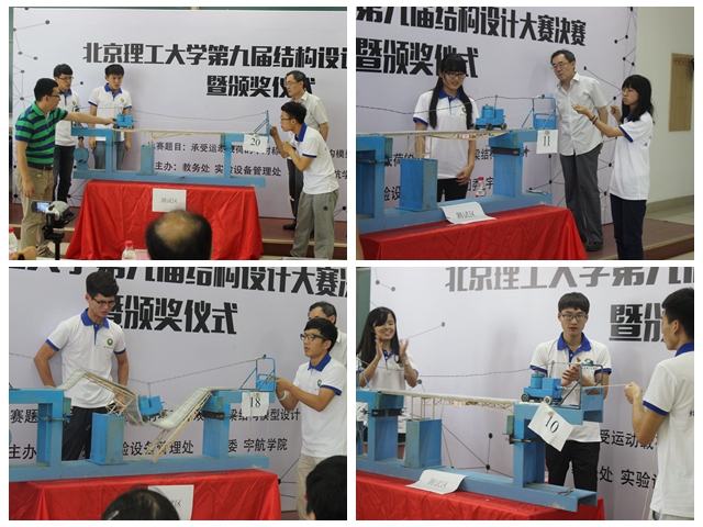 2016年6月7日,由教务处、实验室与设备管理处、校团委、宇航学院联合主办的德赢AC米兰官网第九届结构设计大赛决赛在良乡校区理科教学楼102教室举行。本次竞赛历时一个多月,共有来自宇航学院、机电学院、机械学院等10个专业学院的共211组、633名同学报名参赛。一共100组选手通过了审议并获得了参加5月29日的预赛资格,其中20组通过预赛选拔进入决赛。实验室与设备管理处副处长彭绍春、校团委副书记尚松田、宇航学院副书记副院长方蕾、教务处曲芳堃老师等在决赛现场观看了比赛并为获奖选手颁奖。