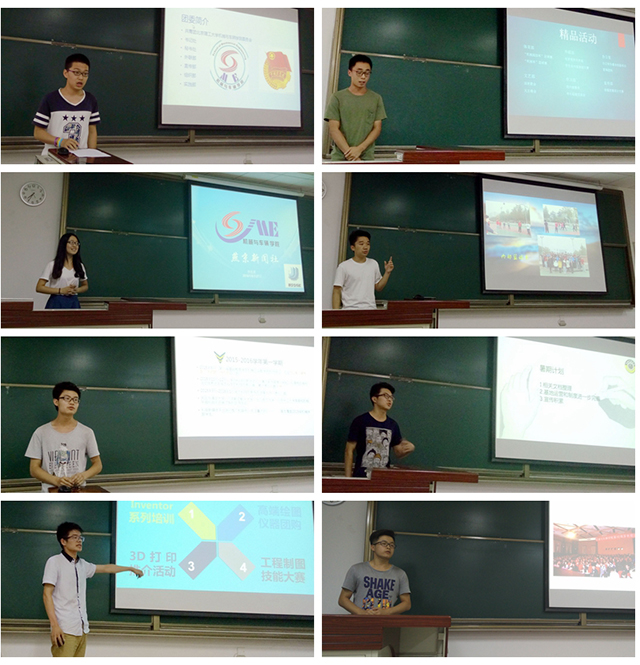 随后,两校区2015-2016学年任期内的团学组织负责人:良乡校区学生团委(原机械学部团总支)副书记张亚纲、良乡校区学生会常务副主席蔚臣、良乡校区共产主义学习实践会常务副会长周子翔、良乡校区学生科协常务副主席高俊、三维成图空间社团会长李小松、中关村校区学生会副主席孙嘉伟、中关村校区共产主义学习实践会会长徐金乐、中关村校区学生科协主席马春峰、燕京新闻社社长李佳蔓等就本学年的团学组织总结与未来学年的规划作了展示。内容涉及团学组织文化积淀、组织框架、品牌建设、活动概况、预期目标等多个方面,充实而又饱含激情,为良乡校区团学组织换届后的具体工作开展提出了指引,为学生骨干的生涯成长提供了可视化分享。