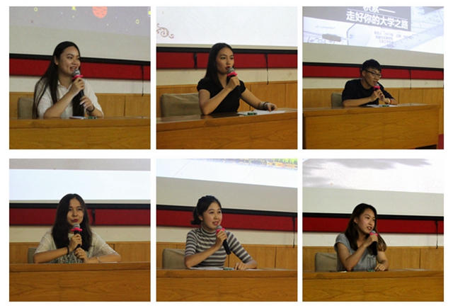 6名优秀少数民族学生由各学院选拔推荐,利用暑期准备了报告内容,他们从不同的角度与新生分享了自己在预科期间和大学期间的收获与感悟,引导新生树立目标、合理利用时间。