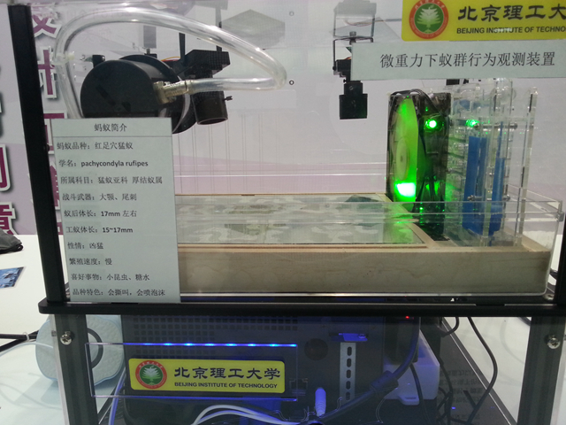 2016年1月,我院积极配合国家科工局,中国科协,探月中心以及学校关于月球探测载荷创意征集的号召,推荐“基于节点型开源SLAM的月球地貌绘制及自导航系统”“可扩展全自主植物培养装置”“微重力蚁群群体行为观测设备”三个作品进行评选,其中“微重力蚁群群体行为观测设备”作品以其新颖的创意和合理的结构设计在全国257件作品中脱颖而出,进入全国二十强!该作品主要由培养器、供液组合、控制电路、温控组件、观测组合与支架结构组成,整机结构大小约为240mm×240mm×80mm,主要用于研究月球环境下,蚂蚁探索未知区域空间的能力、寻找食物的能力并研究其相互协作,信息交流,方向指引等方式,同时研究短期月球飞行中,辐射、微重力、起飞降落等环境对蚂蚁相关神经免疫基因影响。