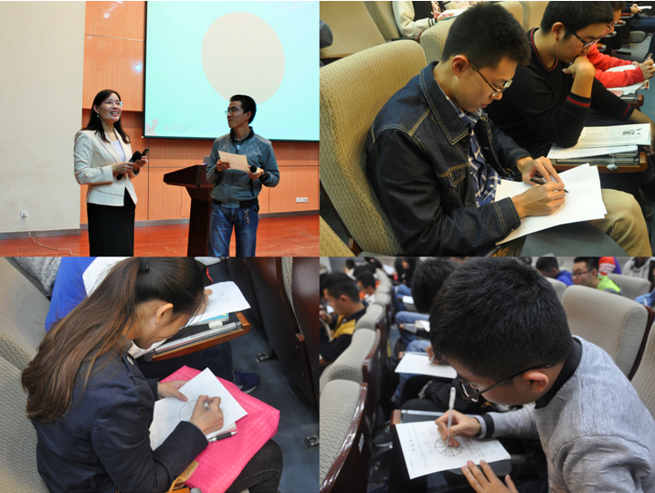 “思路决定出路,现今所做的事情决定着你将来的生活。”王小丹在对同学们进行了看图测验和NLP资源锁定系统的互动后如是说。接着,她向大家详细介绍了幸福人生思考模式,在老师的耐心引导下,同学们明白了“有想法就要敢于行动”的道理。王小丹老师提出“成功五问”,这让同学们不禁反思自己的生活轨迹,并萌发了对自己的人生进行细致规划的愿望。