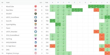 本次比赛题目难度大,代码量大,队员们团结协作、集中精力、积极思考,在短时间内已提出六道题的解题思路。但是由于编码上的难度,在比赛封榜前队员们只顺利通过了四题,全队列于全场第四的位置。最后一小时,队员们没有满足于当前成绩,也没有因赛题的难度退缩,继续努力修改代码,终于在比赛结束前十分钟又通过一题,名次上升到第三,夺得大赛季军!