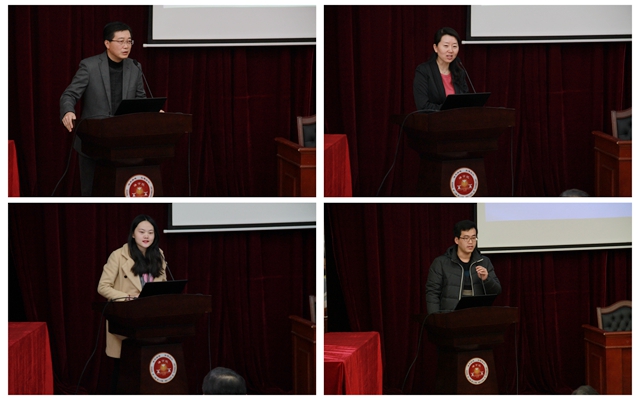 接着,北京知识产权法院审判三庭杜长辉庭长代表实习单位,以“朴素”为主题高度赞扬并感谢我院学生三个月来的实习工作,也代表北京知产法院希望基于“志愿服务”的模式进一步与我校开展多批次、多层次的深度合作。海淀区人民法院教育培养处葛玲处长也在肯定我院工作的同时,代表海淀法院表明基于我院历届实习生的优异表现,将会一如既往支持并优先安排我院实习工作的愿景,并提出了未来实习工作中“法官助理身份”、“法律思维训练”、“法律职业精神养成”、“参与课题研究”和“中小学法制校长助理”等要点。我院学生代表王倩玫代表在海淀法院实习学生对自己实习经历进行了总结,提出从细微的小事做起、从踏实的态度做起,通过与法官建立良好互动进而提升实习效果的实习建议。我院优秀实习生代表赵乾坤同学,通过真情实感地阐述自己在北京知识产权法院实习的心路历程,向2016级“准实习生”们提出继续保持“朴素”的实习态度,发挥自主能动性以及能动总结方法论等宝贵建议。