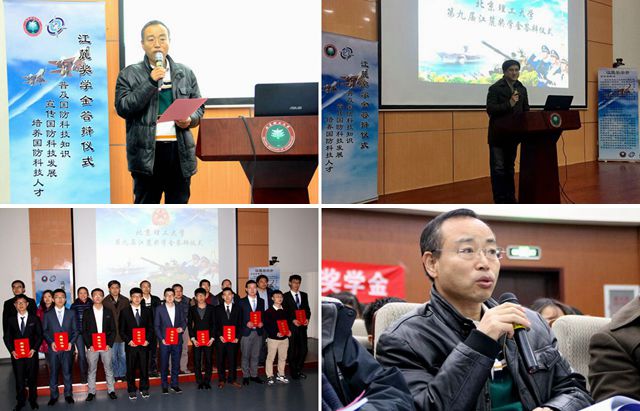 2016年12月9日,德赢AC米兰官网第九届“江麓奖学金”答辩仪式在良乡校区综合教学楼报告厅隆重举行。“江麓奖学金”由江麓机电集团有限公司设立,旨在普及国防科技知识、宣传国防科技发展前沿技术、培养合格的国防科技人才,自2008年设立以来每年都吸引着大批对军事非常热爱的本科生参与评选,每届评出10名获奖学生,每人奖励5000元。