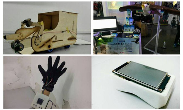 智能乒乓球收集车 (左上)仿生老鹰扑翼式飞行器(右上)