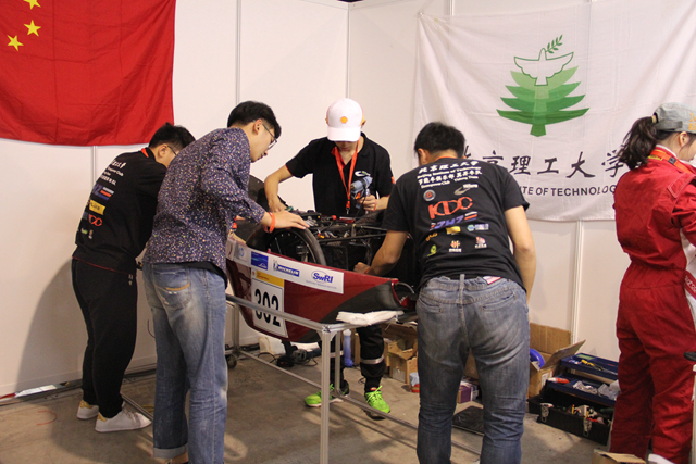 赛车漂洋过海来到异国赛道,显得有些水土不服,赛程一开始就经历了轮胎爆胎、传动齿轮松动等意外,险些导致难以完赛,再加上恶劣的赛道条件和炎热天气,这次的奖杯更显得来之不易。北理工代表队的队员们各司其职、顽强拼搏,在困难面前绝不轻言放弃,尤其是在这样高温和恶劣工况下连续长时间驾驶的女车手,也依然一丝不苟地刷新着每一圈的成绩。在队员们与指导老师共同的努力下,赛车在正式赛中成绩稳步提升,最终成功地完成了全部比赛。