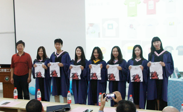 郭宏宣读了优秀毕业研究生名单,他勉励同学们要保持积极向上的心态,在今后的工作和生活中能够正视挫折、勇于挑战,不断历练和完善自我。同时也希望同学们能够不忘母校,常回来看看。随后,他为毕业生代表赠送了毕业纪念衫,希望每一位设计学子能够好好的磨练专业技艺,在未来的道路上能够无往而不胜。