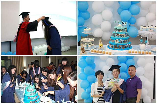 在学位授予仪式中,杨建明教授为毕业生一一授予学位并向他们表示毕业祝贺。老师、同学和家长们共同品尝了学院精心准备的毕业蛋糕,温馨的场面如家一般温暖,本次毕业典礼在大家的欢声笑语中落下帷幕。
