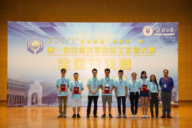 2017年8月16日,首届全国大学生化工实验大赛全国总决赛在天津大学落下帷幕。由北理工化学与化工学院邓文生、康惠宝、刘文芳等老师指导的由化学工程与工艺专业2014级本科生王悦婧、张佳钰和2015级梁悦同学组成的“悦·钰”队取得佳绩,获团体一等奖。