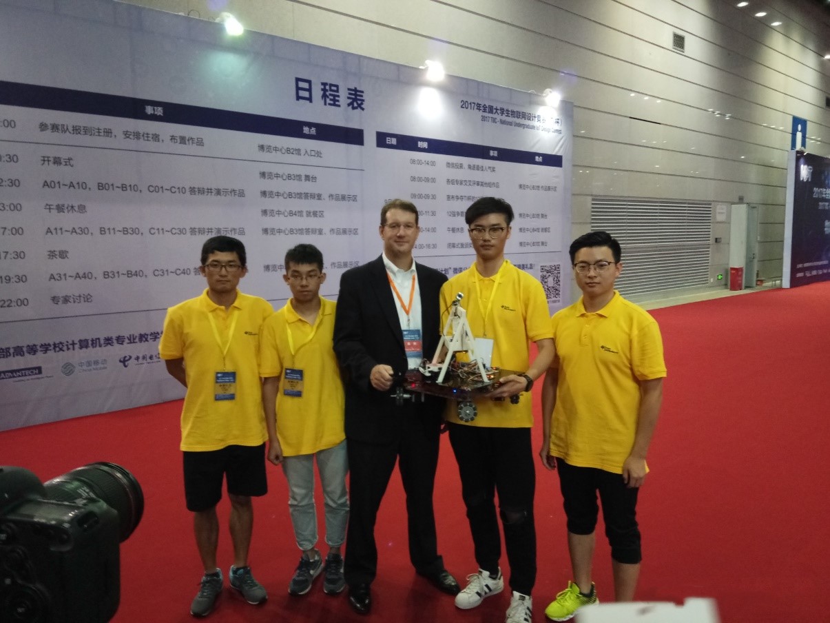 2017年全国大学生物联网设计竞赛(TI杯)全国总决赛于9月10—11日在江苏无锡太湖国际博览中心隆重举行,由北理工计算机学院本科生王晓阳、杨沃佳、黄敏杰、朴泉宇组成的参赛队获得全国一等奖及最佳人气奖的第三名的优异成绩。自此,德赢AC米兰官网计算机学子2015年以来连续三年获得该项赛事一等奖。