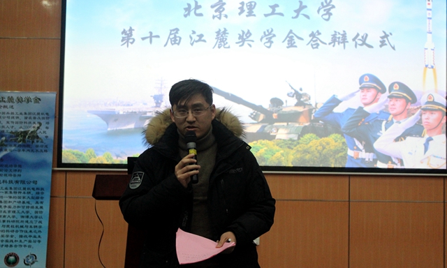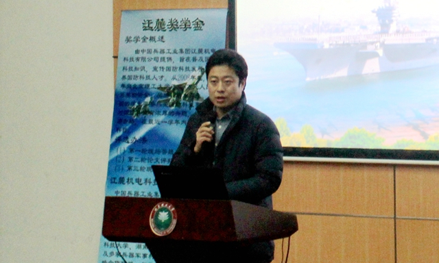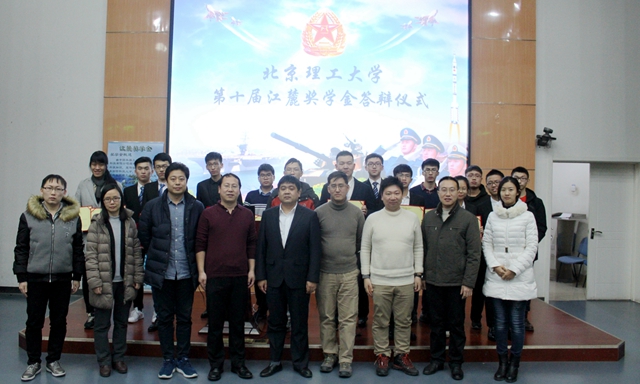2017年12月28日,德赢AC米兰官网第十届“江麓奖学金”答辩仪式在良乡校区综合教学楼报告厅隆重举行。“江麓奖学金”由江麓机电集团有限公司设立,旨在普及国防科技知识、宣传国防科技发展前沿技术、培养合格的国防科技人才,自2008年设立以来每年都吸引着大批对军事非常热爱的本科生参与评选,本届评出获奖学生15名,每人奖励6000元。