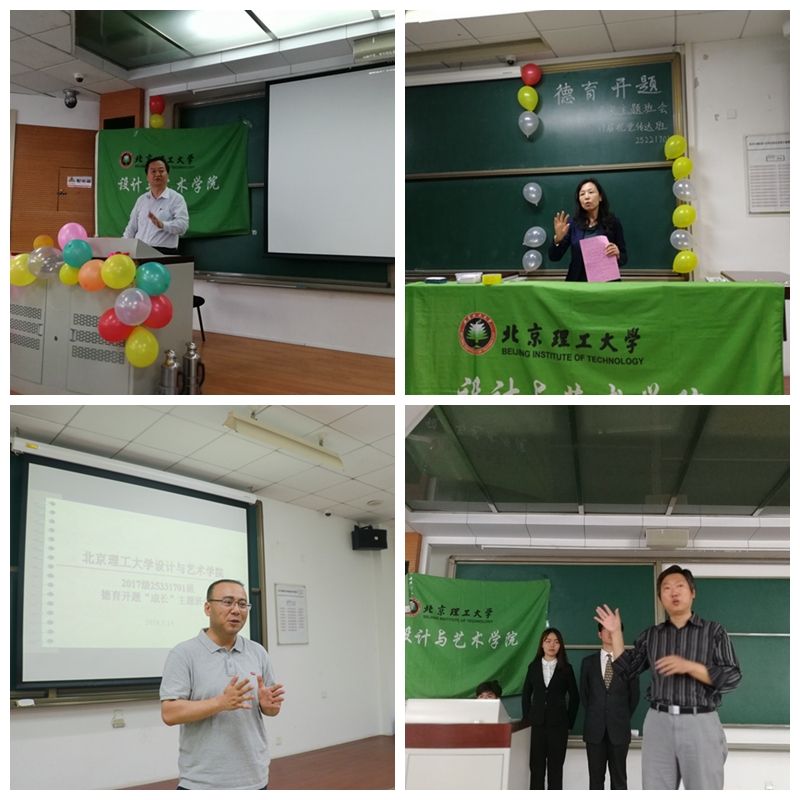 编辑:欧阳哲 审核:孙飞 阅读次数:为响应学校“担复兴大任,做时代新人”的主题教育活动开展号召,实现把立德树人理念贯穿人才培养全过程。根据学校“一年级工程”工作要求,2018年5月初,北理工设计与艺术学院2017级本科生德育开题“成长”主题班会在良乡校区有序开展,学院2017级本科生德育开题工作也迎来了高潮。研究生院、设计与艺术学院相关负责人,2017级班主任、分团委副书记、低年级辅导员以及全体2017级学生参与此次活动。