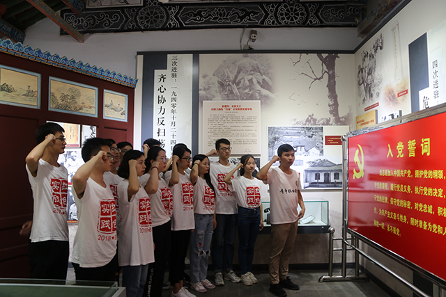 在八路军总部旧址纪念馆,实践团员们重温入党誓词,表达对革命先烈的缅怀,以及传承红色基因的决心。