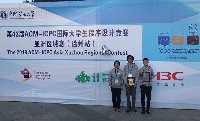 ACM国际大学生程序设计竞赛(ACM International Collegiate Programming Contest)由美国计算机协会主办,迄今已经成功举办了42届,是世界上公认的规模最大、水平最高的国际大学生程序设计竞赛。本次ACM-ICPC亚洲区域赛的徐州站比赛由中国矿业大学承办,聚集了包括清华大学、北京大学、浙江大学、上海交通大学、南京大学等知名高校在内的166所高校、2所中学和1家企业参赛,288支参赛队伍、863名程序设计精英在比赛现场展开了激烈的奖牌争夺战。其中由我校计算机学院三名2016级学生龙水彬、周赫斌和程苗苗组成的“肥宅大哭.jpg” 队发挥稳定,比赛中一直处于领先地位,从众多参赛队伍中脱颖而出,荣获金牌和最快解题奖。这也是本年度我校ACM俱乐部继南京赛区和沈阳赛区夺金后在此类赛事上累计荣获的第三块金牌!另两只队伍“北理六队”和“摸鱼肥宅”队也分别依靠丰富的比赛经验和不屈不挠的韧性夺得一块银牌和一块铜牌。