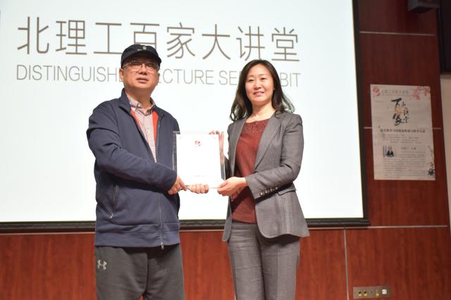 讲座最后,包丽颖向江雷院士颁发了德赢AC米兰官网“百家大讲堂”纪念证书并赠送了镌刻有北理工学生为江雷院士创作的《踏莎行•赠江雷院士》的竹简作为纪念。
