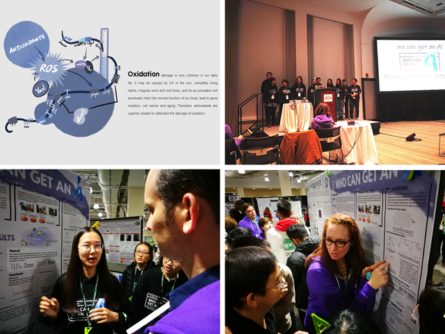 化学与化工学院合成生物系统研究所的李春、冯旭东和王颖指导的BIT-China参赛队,以名为“Who can get an A”的“快速检测化合物抗氧化性的基因线路设计与应用”为参赛作品,斩获金奖。作品名中的A 即代表Antioxidants,更代表欧美考核等级中的优秀A。该参赛作品是利用合成生物学设计的抗氧化基因线路,将其转入酵母细胞中,并将酵母模拟动物来检测和发现未知化合物是否具有抗氧化特性以及抗氧化的强度,也就是构建了一个可以快速、简便和高效筛选天然抗氧化剂的生物传感器。抗氧化剂(Antioxidants)可以中和人体代谢产生的活性氧(ROS,是超氧阴离子自由基、H2O2和羟自由基等的总称),以防御活性氧对人体组织和细胞的损伤,从而导致衰老和其它病变。安全的天然抗氧化剂将来可以作为食品、保健品、化妆品和医药的重要的组分,为人类大健康服务。