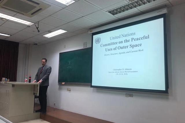 美国乔治城大学法学院空间法讲师为法学院同学作报告
