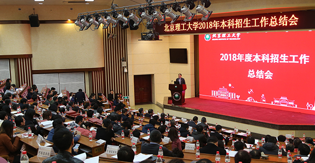 张军代表学校向为招生工作付出辛勤劳动的全校教职工、学生和广大校友表示诚挚谢意。他指出,一流生源是一流大学人才培养的起点,是高校可持续发展的基础,是大学品牌和社会信誉度的重要指标。为做好学校2019年本科招生工作,实现预定生源质量目标,他向全校招生工作者提出五点要求:勤动“脑”,善谋划,加强顶层设计,主动求新求变;巧用“眼”,找问题,勇于正视差距,精准实施策略;精着“手”,抓落实,采取多种举措,实现预期结果;多动“腿”,勤走访,常态招生宣传,培养北理“铁粉”;真走“心”,交朋友,强化双方互动,用情联络中学。他要求各招生组要做到五个“一”:打造一支过硬团队,瞄准一个发展目标,制定一个详细计划,拿到一份精准名单,实现一个预期结果。他强调,招生工作关乎千家万户的切身利益,社会关注度极高,全校招生工作者必须严格遵守招生工作纪律;在学校创建“双一流”的关键时期,招生工作要超前谋划、打破定式、主动设计、全力以赴、久久为功,实现跨越式提升,为学校早日建成扎根中国大地的世界一流大学而努力。