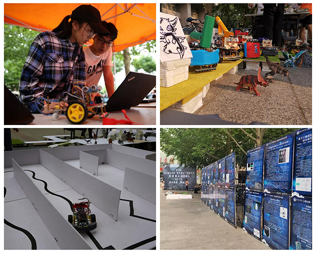 5月28日,“屠龙勇士”决赛拉开帷幕。按照比赛规则,参赛智能车进入KT泡沫板搭建的赛道后,首先要使用红外线循迹模块识别复杂的“地形”,再借助超声波测距模块穿过幽静的“山谷”;最后,“勇士”通过手机app控制智能车找到“龙穴”,操纵泡沫小球发射器,完成对“恶龙”的击杀。精彩的比赛收获了现场许多同学、老师的声声赞叹。最终,大赛共角逐出3组一等奖,5组二等奖、7组三等奖、3组最佳外观奖和若干参与奖。