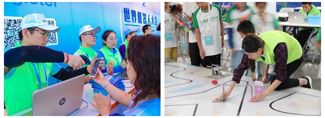 我校121名志愿者组成“志学同行,启梦科技”暑期社会实践团,为本次大会提供有力的服务保障。我校志愿者协助举办主论坛和六大主题、23场专题论坛,参与内宾接待、会议中心服务、专业观众接待、园区指引、国际合作论坛等18个岗位。按照暑期社会实践的工作流程,全体志愿者参加“2019世界机器人大会会前培训”,培训分为“我眼中的大会”“我能做什么”“我要怎么做”“对我的评价”这四个部分。通过培训,志愿者了解了大会总体情况、场馆布局、志愿者岗位设置、工作职责等,为圆满完成任务奠定了基础。
