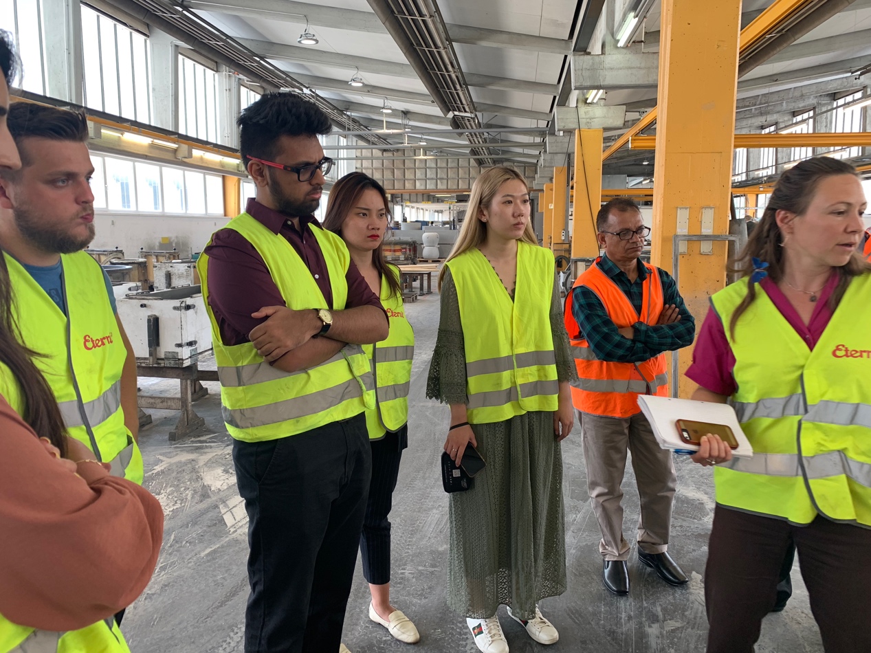 在两周的项目期间里,来自三个国家的20名同学分成两组,分别对BOBST、Eternit、STS等八家企业进行考察,围绕企业的质量安全管理、人力资源管理、企业社会责任、可持续发展等问题进行调研,并对每家公司不同层级的员工进行采访。