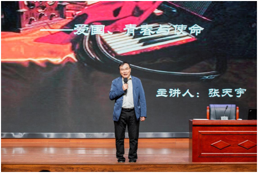 在手风琴中的爱国情部分,张天宇分享了自己担任空政文工团团长期间带队奔哨所、赴边关、上高山、下海岛的感人瞬间,让同学们知晓没有和平的年代只有和平的国家,是伟大平凡的军人保家卫国才有现在和平幸福的生活。