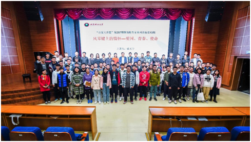 讲座最后,张天宇和演出专家与同学们亲切合影留念,寄语同学们继承革命传统和优良作风,认真学习,勇于实践,为祖国奉献芳华。同学们也用自己的方式表达了对专家团队的欢迎与感谢,在“专家我想对您说”环节,课程主持教师许晶选读了三位同学感言,来自精工书院的宋宸、李汶珈和求是书院的孟里这样说:“我想对专家说敬佩您如此精湛的水准和感激您能够精心准备讲座。艺术的力量使人强大,通过第三讲坚定了我对艺术的追求,对国家的热爱,对使命的承担。我想对专家说谢谢您!”