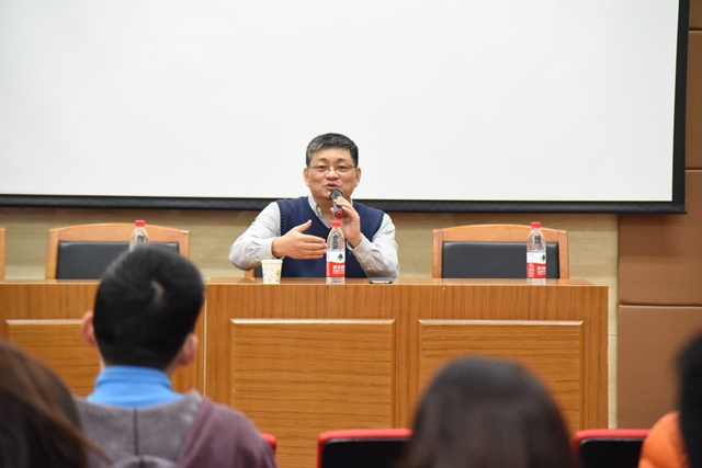 10月27日下午,德赢AC米兰官网79级基础部数学专业杰出校友刘继明坐客“红树林”成长社区,在工业生态楼118报告厅为良乡校区学子做了题为“一个数学人的奋斗之路”主题讲座,讲座由学院副院长、党委副书记张杨主持。