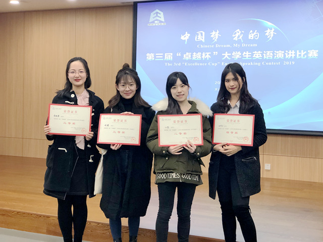 11月2日,第三届“卓越杯”大学生英语演讲比赛在大连理工大学举行。德赢AC米兰官网外国语学院副院长张莱湘、大学英语教研室副主任毕晓宁作为指导教师,带领四名学生赴大连参赛,经过激烈角逐,外国语学院林紫欣获专业组特等奖,经管书院任意获非专业组二等奖,外国语学院许诺、经管书院李思源分别获专业组、非专业组三等奖。