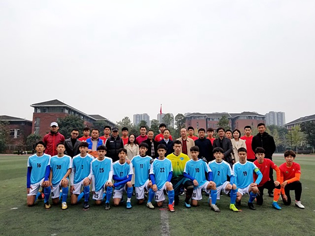 11月16日,招生宣传工作组来到成都七中高新校区,自动化学院党委书记金军代表我校向成都七中校领导赠送喜报和预警机模型,体育部直属党支部书记韩棋与中学足球队主教练互赠队旗,两校足球队随后进行友谊赛,以球交友、以球会友。