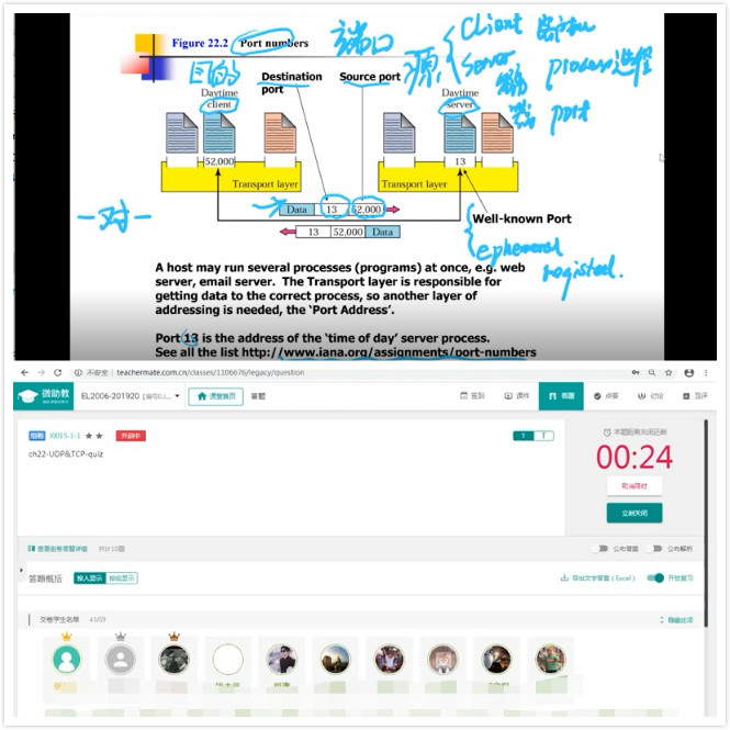 数据通信课程刘家康教授结合zoom会议直播功能、surface手写屏幕、微助教随堂测验等多种手段进行直播课程的讲授。