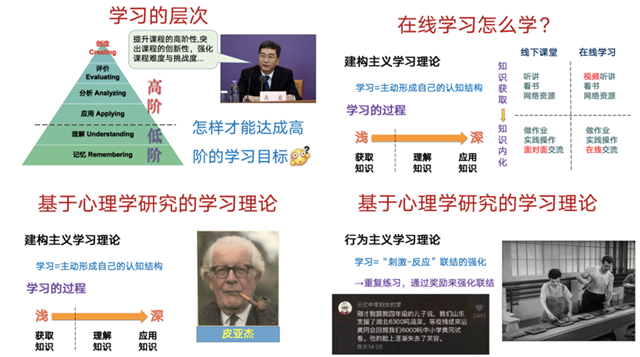 高琪首先发起了居家学习状态小调查,由此引发同学们的思考:线上学习和课堂学习两种学习方式有何不同?学习效率受哪些因素影响?为使同学们科学全面地认识学习的本质,他从学习的定义和层次谈起,强调提升学习的高阶性才得取得良好的效果。随后,他进一步强调,找到科学的学习模式有助于达成高阶的学习目标。他由古哲学家对学习的经验总结引入,概述了行为主义学习理论和建构主义学习理论,并对两种理论进行比较,借助生动的案例深入浅出地为大家剖析了学习的全过程,提出了虚假学习和真实学习的概念,提醒同学们警惕“假努力”陷阱。