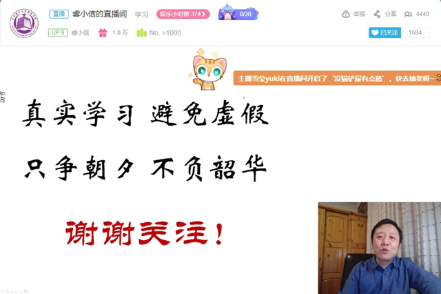3月16日晚8时,睿信书院学育导师、63011826班班主任高琪通过哔哩哔哩网站“睿小信”直播间在线讲授了“人是如何学习的”专题讲座,为居家在线学习的睿信学子指点迷津。